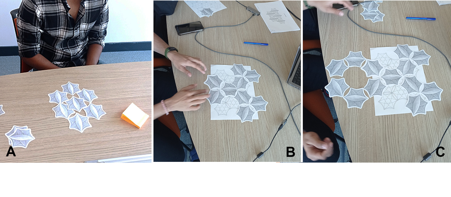 Above: Participants co-designing their preferred display arrangments using paper modules.